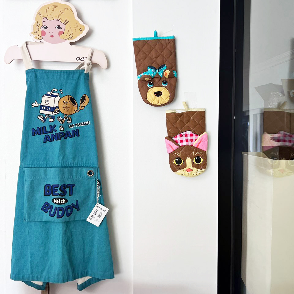-일본 디자인 브랜드의 귀여운 일러스트가 그려진 앞치마 제품 소개해 드려요.
