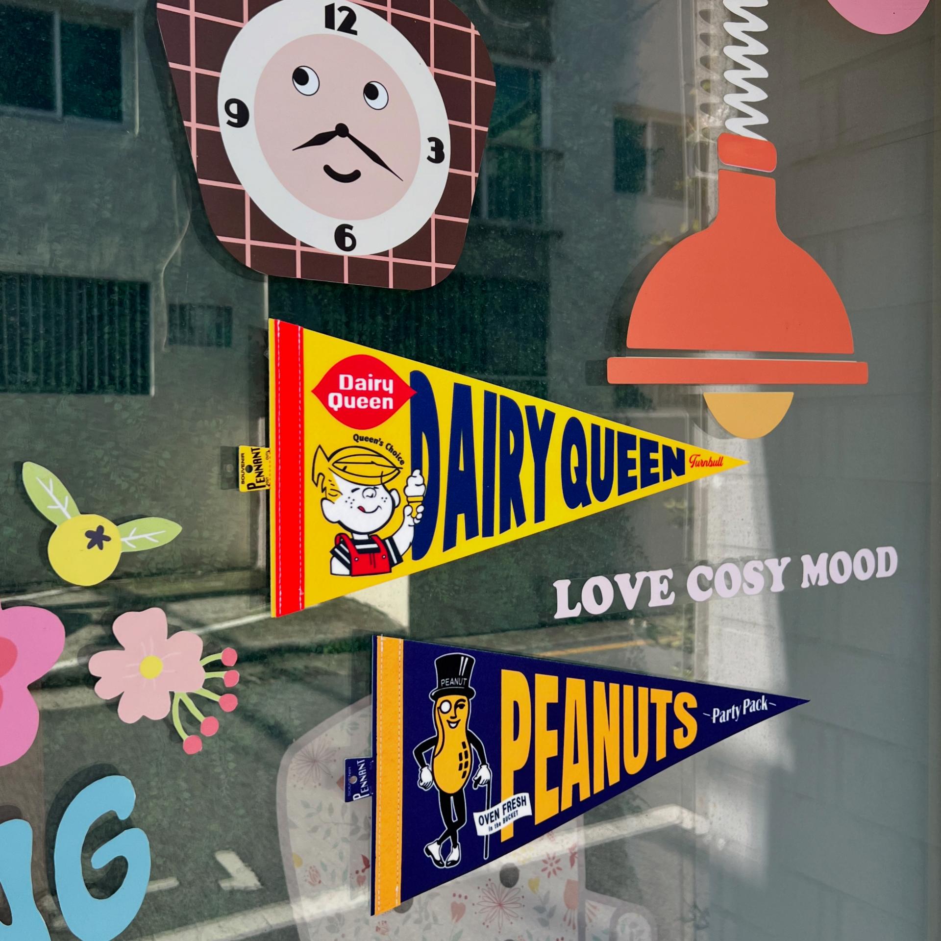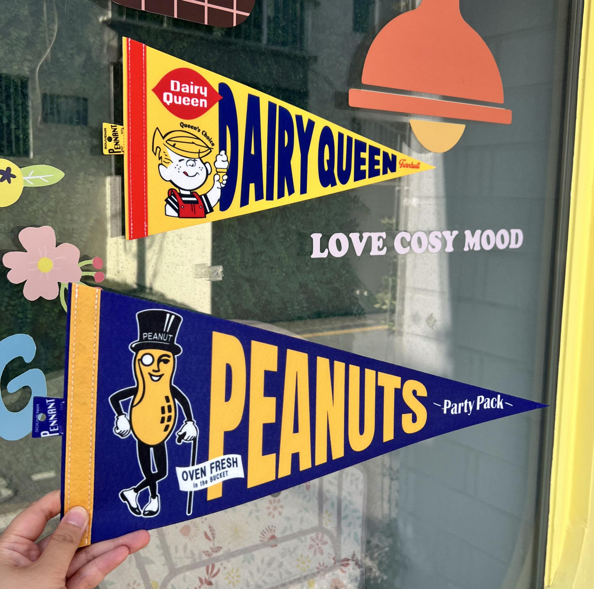 -미국 빈티지 캐릭터가 프린팅 되어있는 펠트소재 페넌트 제품이에요.
