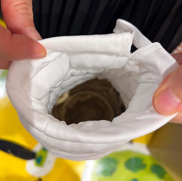 -윗부분이 조이개 형식으로 열고 닫을수 있으며 손잡이 부분의 끈은 손목에 걸 수 있어요.