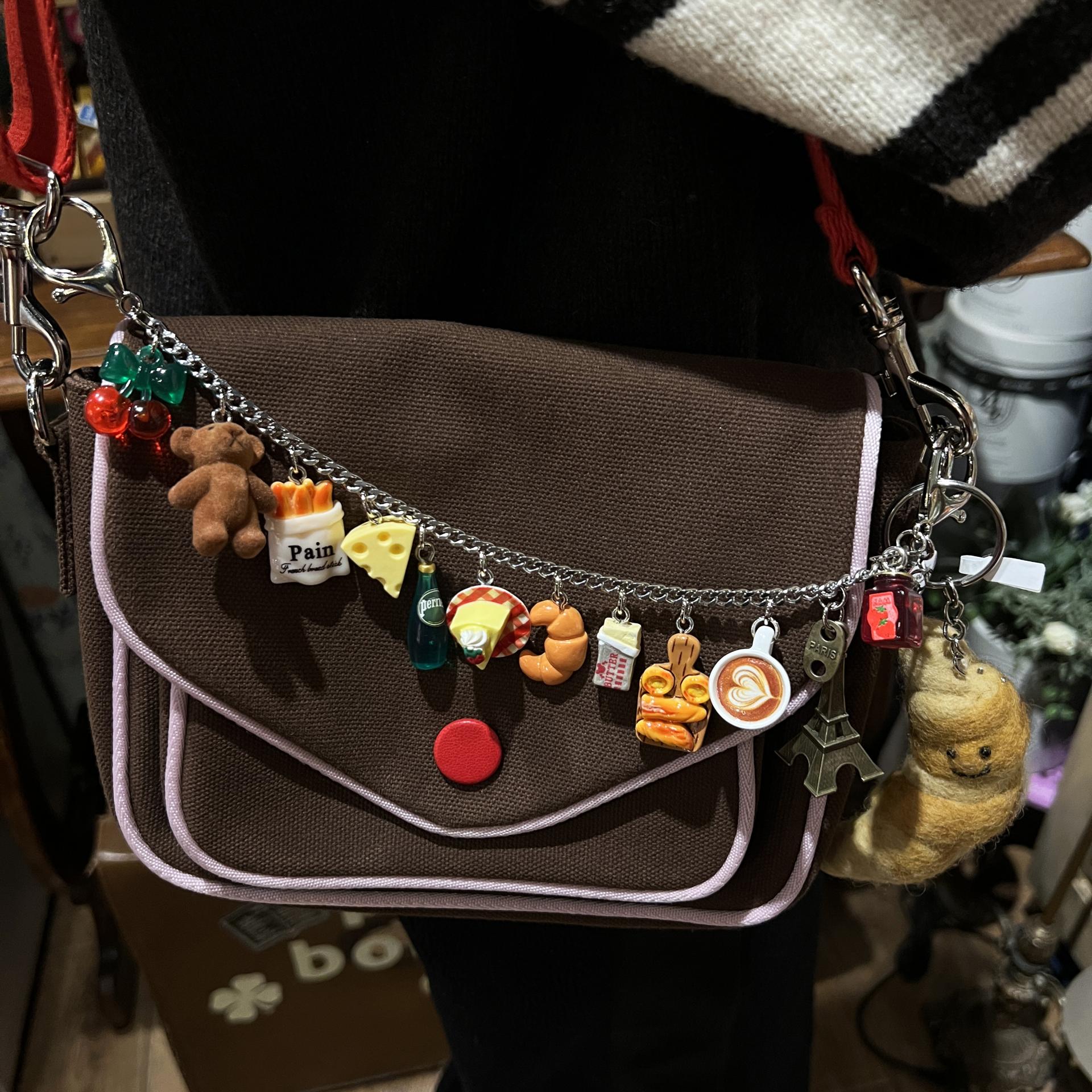 -귀여운 참장식으로 만들어진 백참키링으로 좌우에 걸고리가 있어서 가방에 걸 수 있어요.