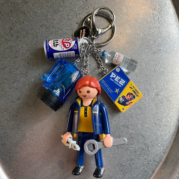 -정품 플레이모빌 피규어와 유니크한 참장식 조합의 키링으로 걸고리가 있어서 가방에 걸 수 있어요.