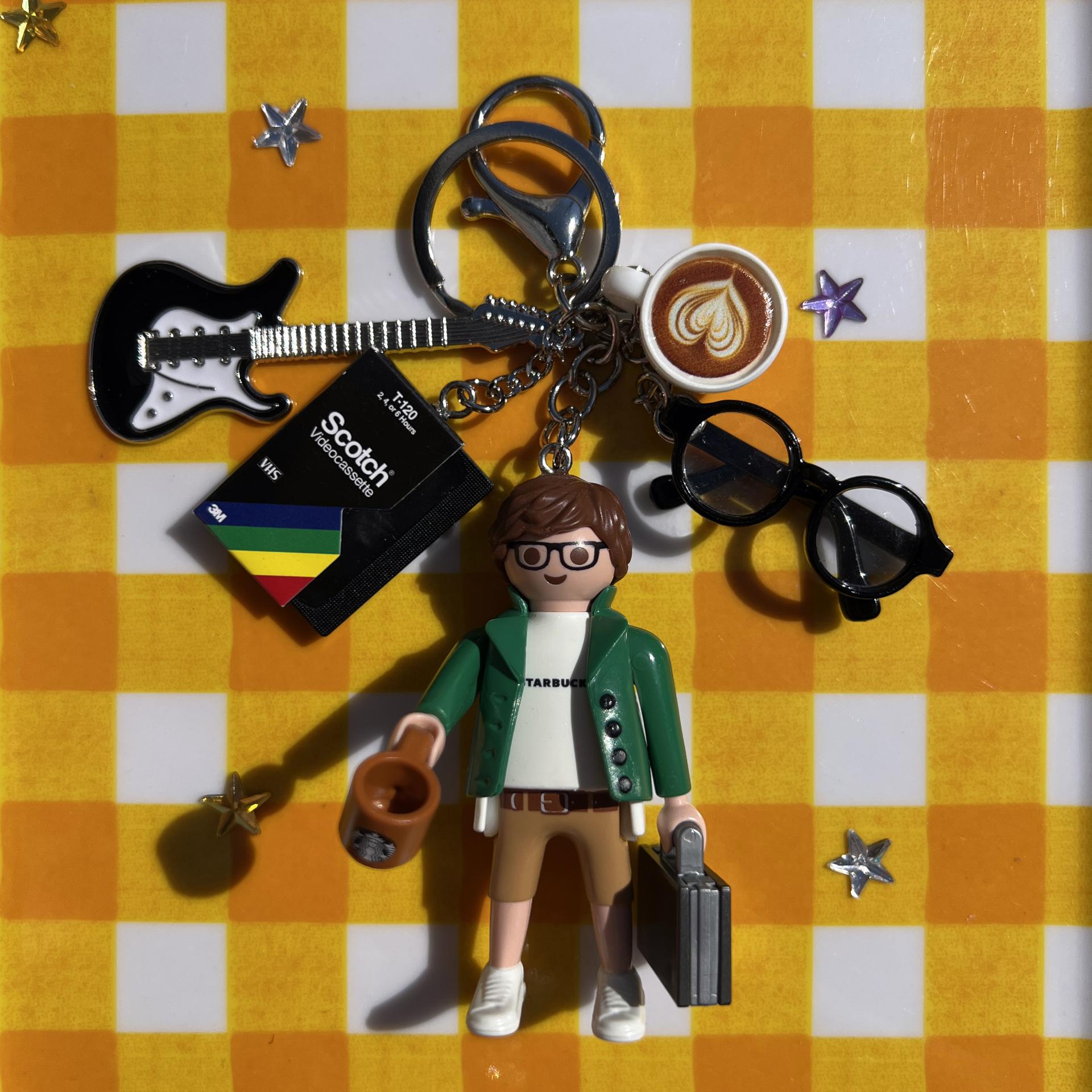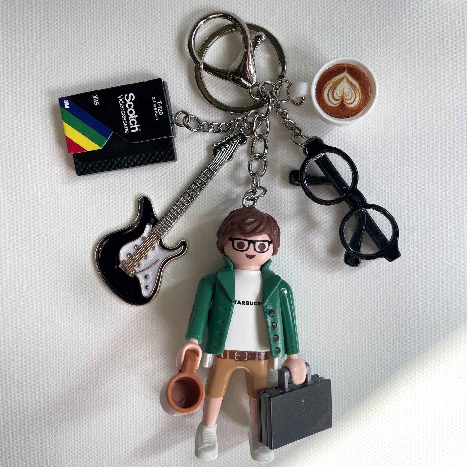 -정품 플레이모빌 피규어와 유니크한 참장식 조합의 키링으로 걸고리가 있어서 가방에 걸 수 있어요.